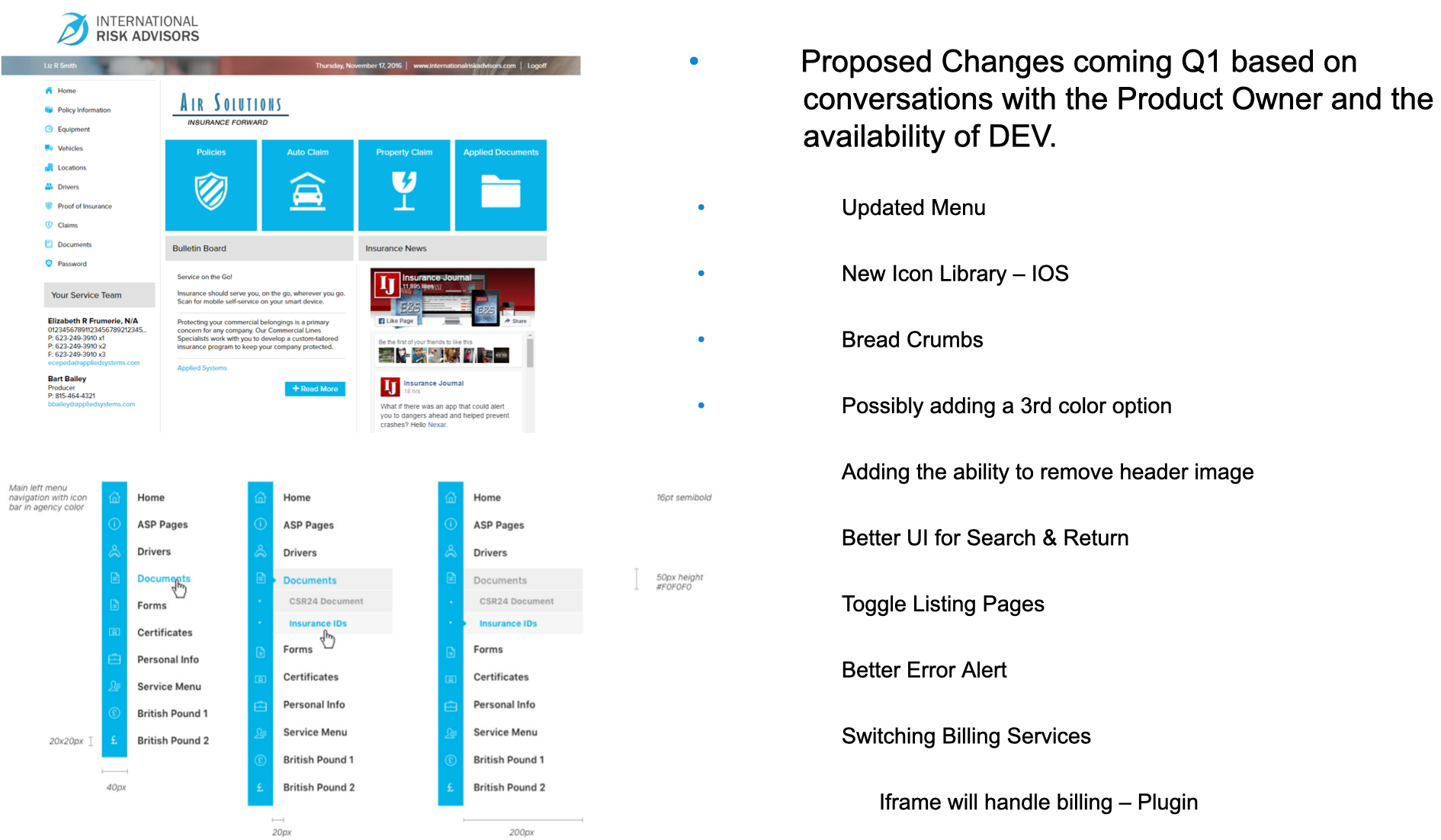 Designed info architecture and interface design fixes
