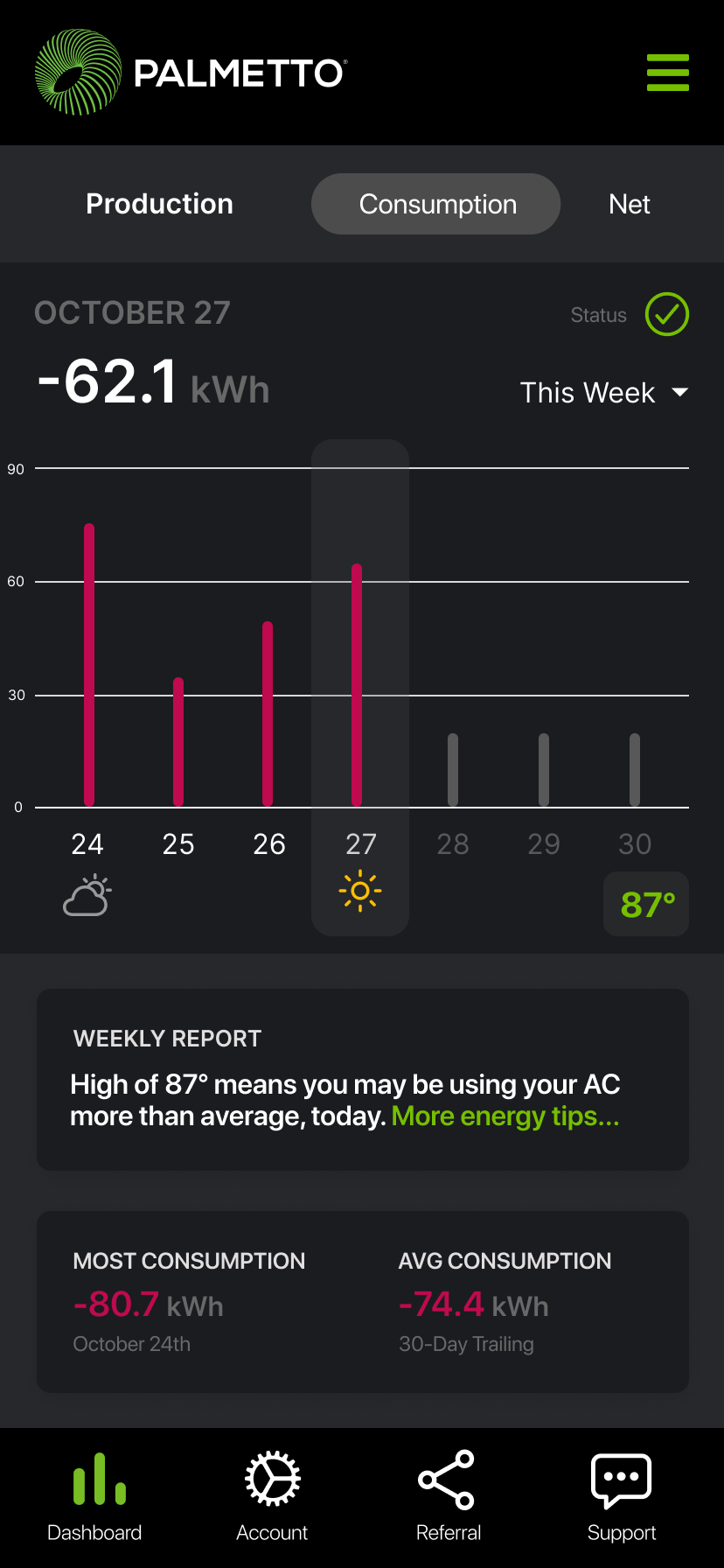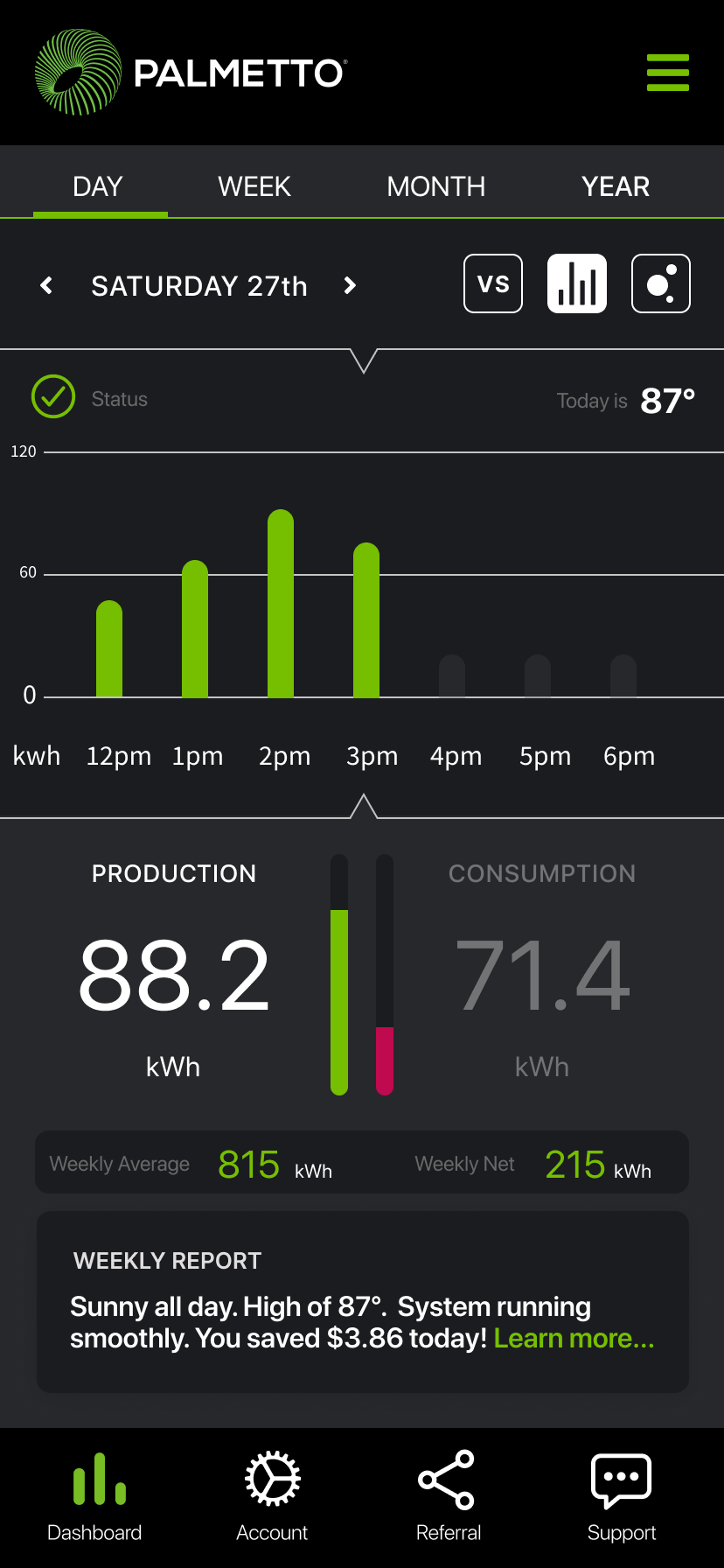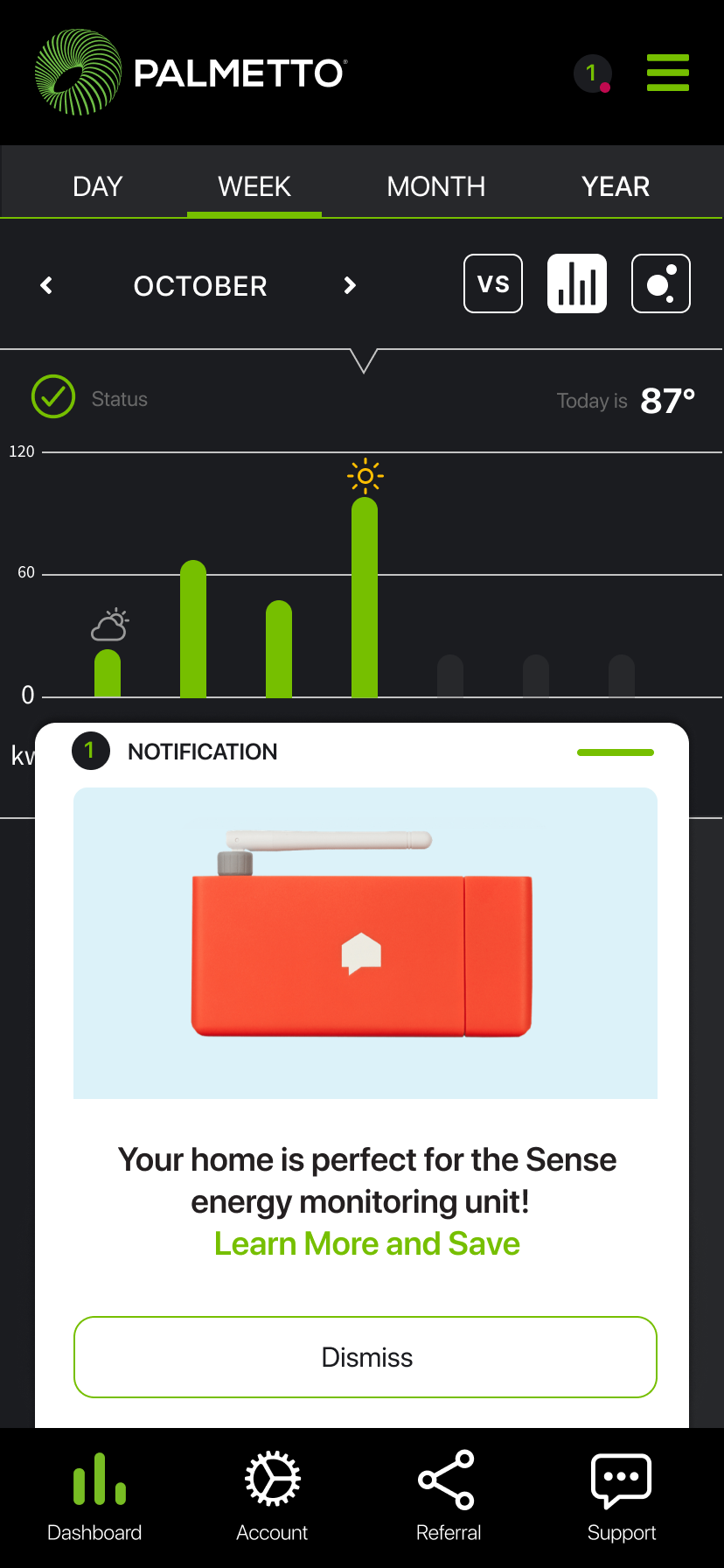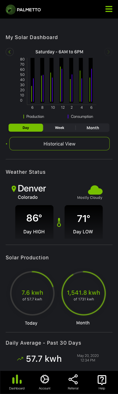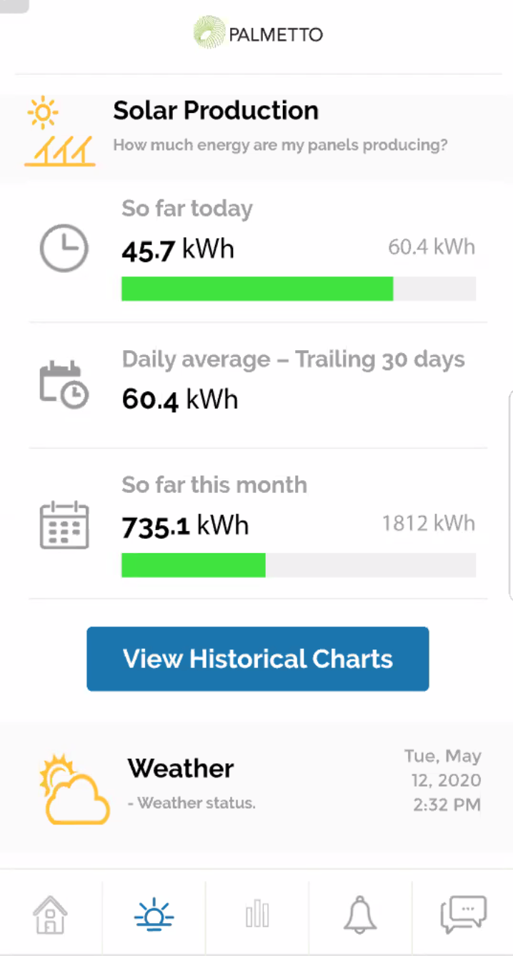 Goal: In 1 year, Palmetto App will be the central hub for solar customers to gain insight into home energy production, consumption, weather alerts, and appliance efficiency.