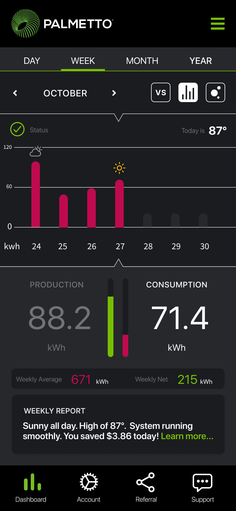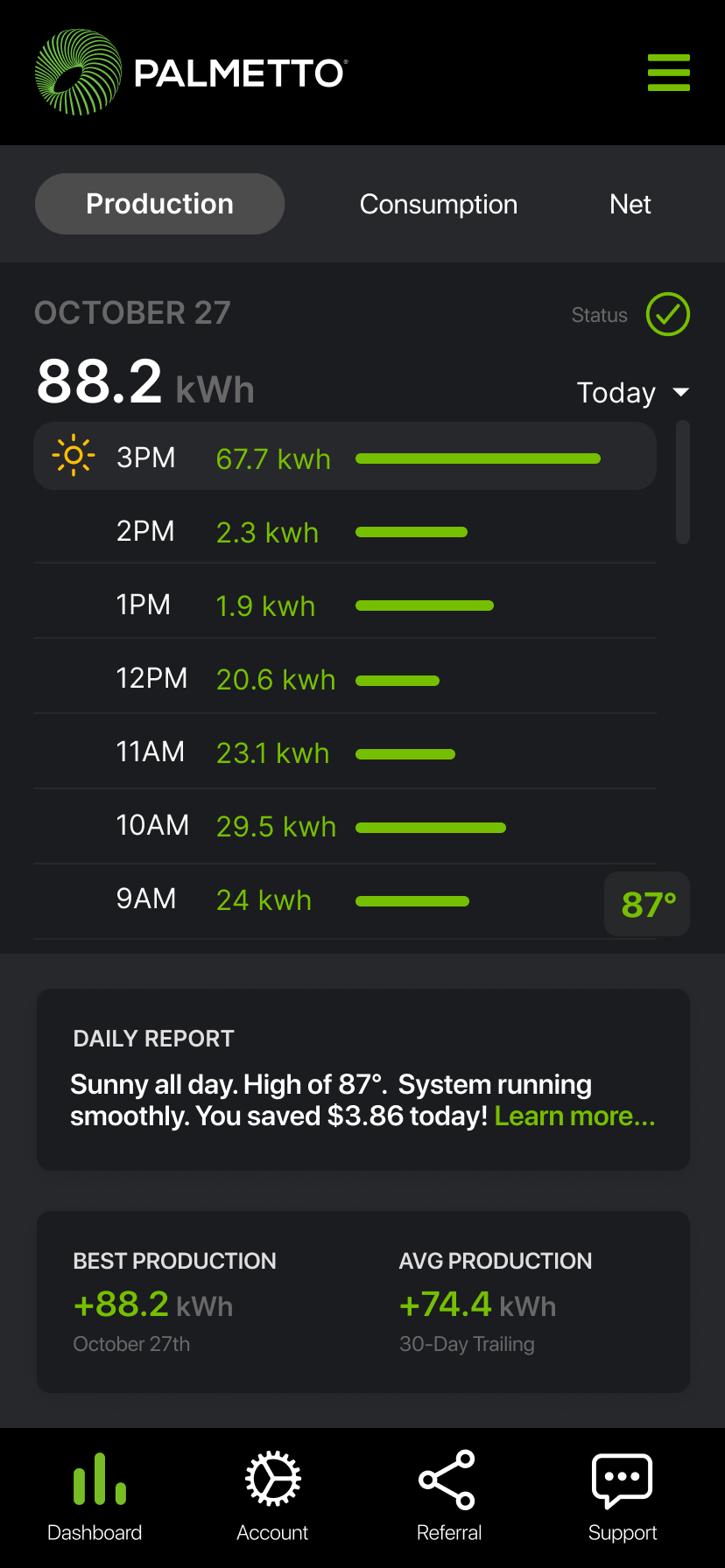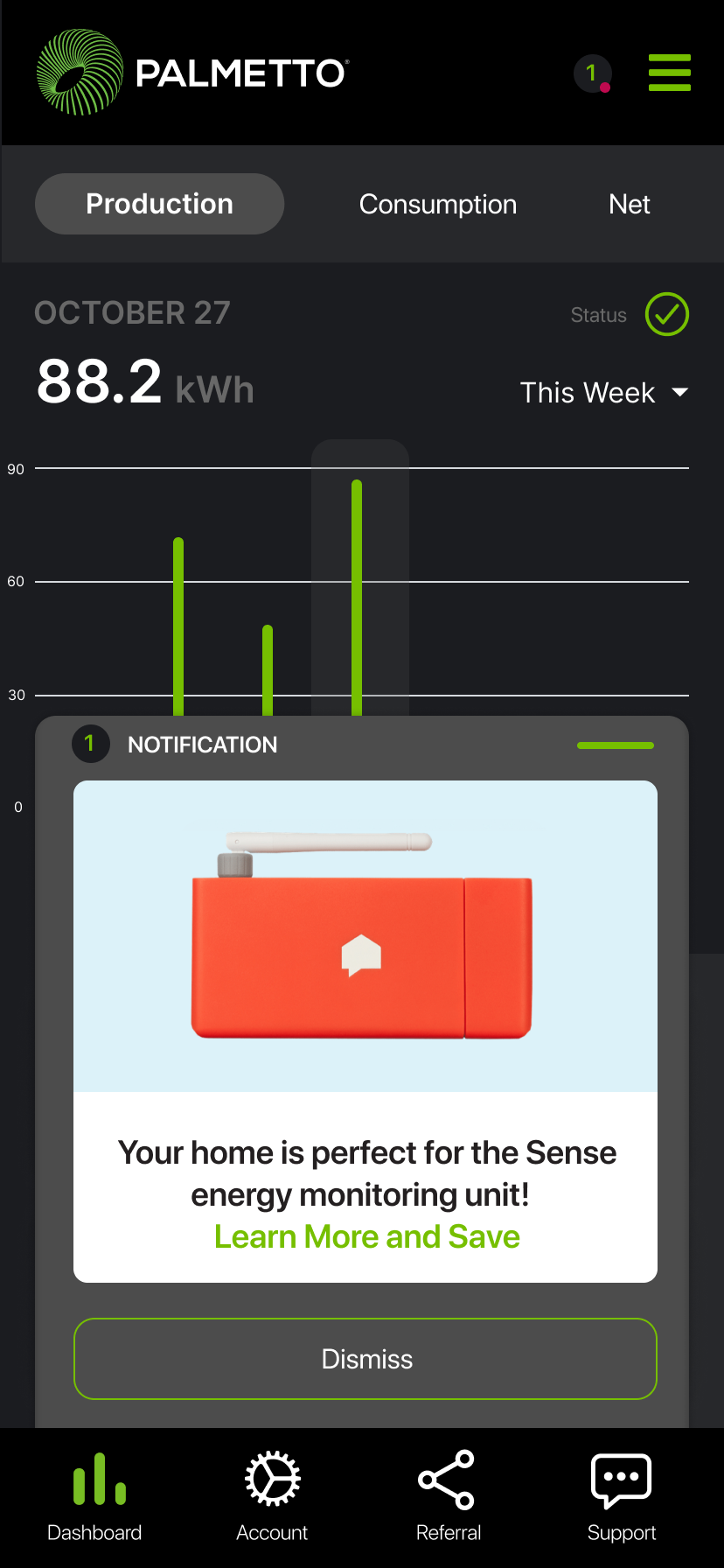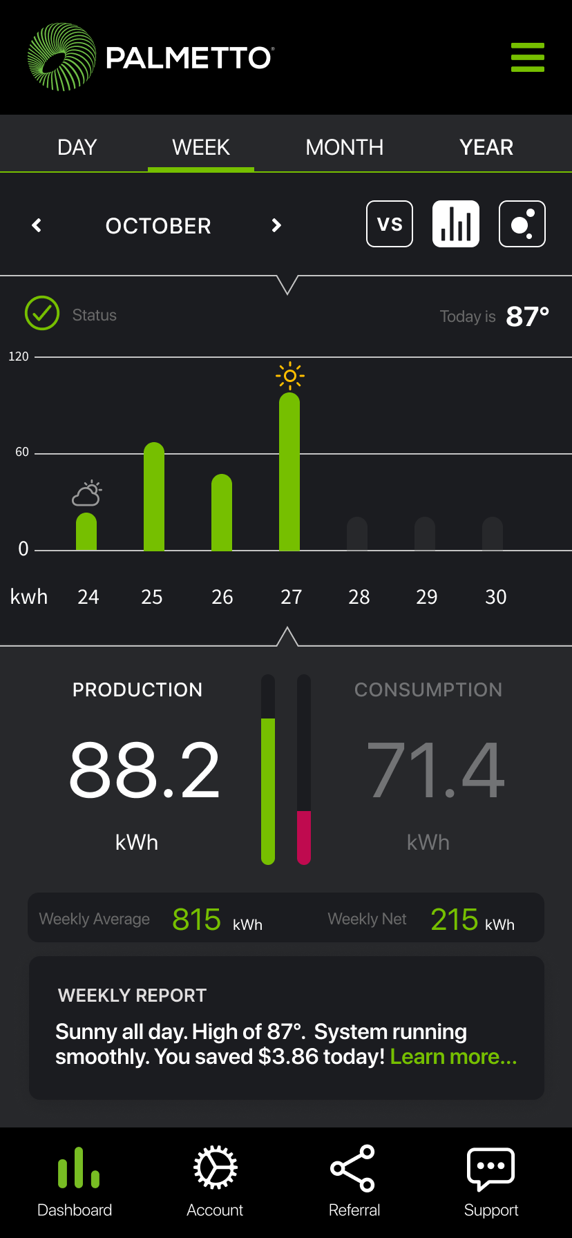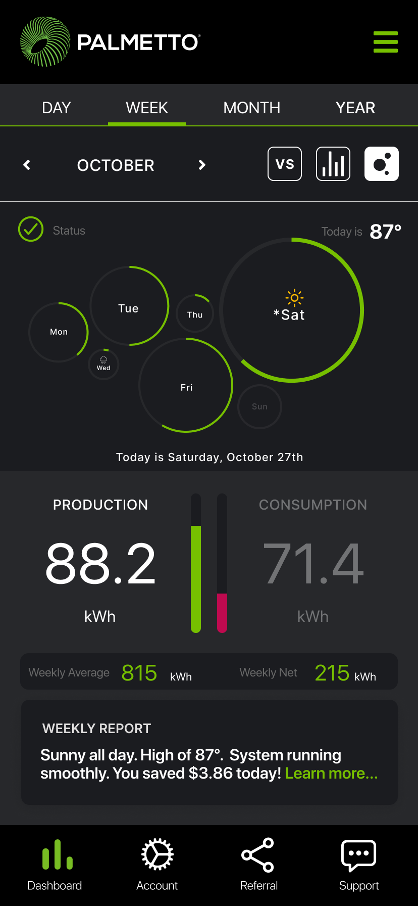 Goal: In 1 year, Palmetto App will be the central hub for solar customers to gain insight into home energy production, consumption, weather alerts, and appliance efficiency.