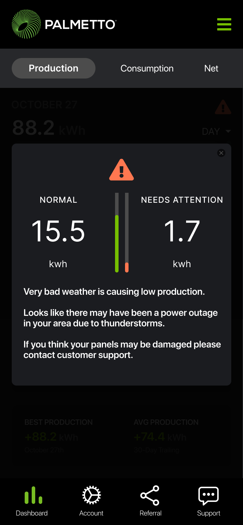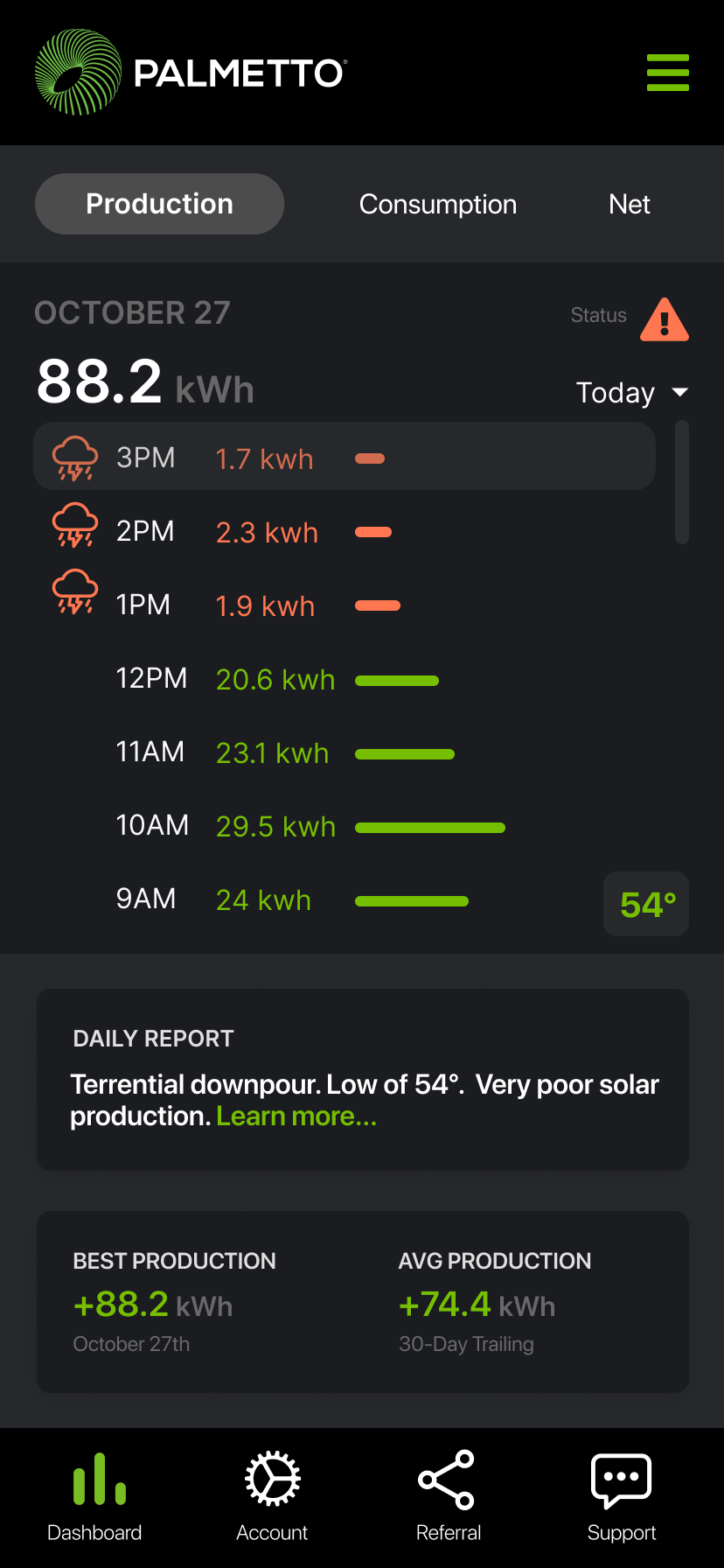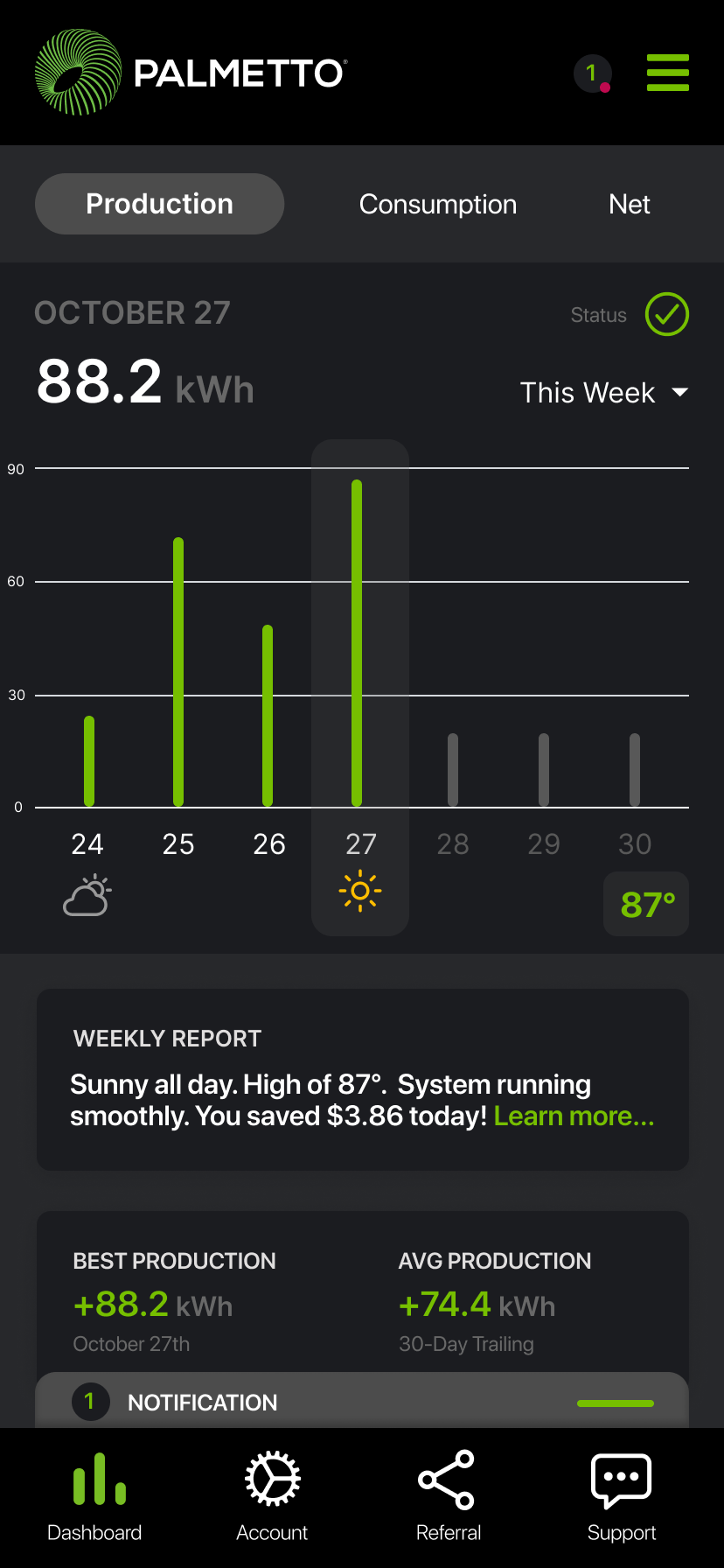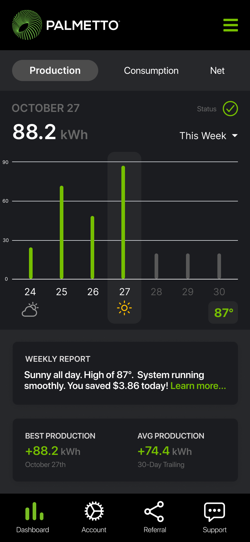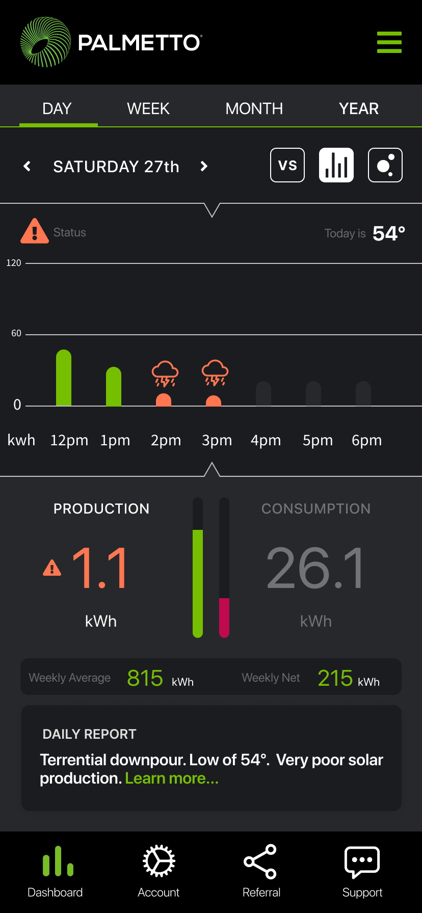 Goal: In 1 year, Palmetto App will be the central hub for solar customers to gain insight into home energy production, consumption, weather alerts, and appliance efficiency.