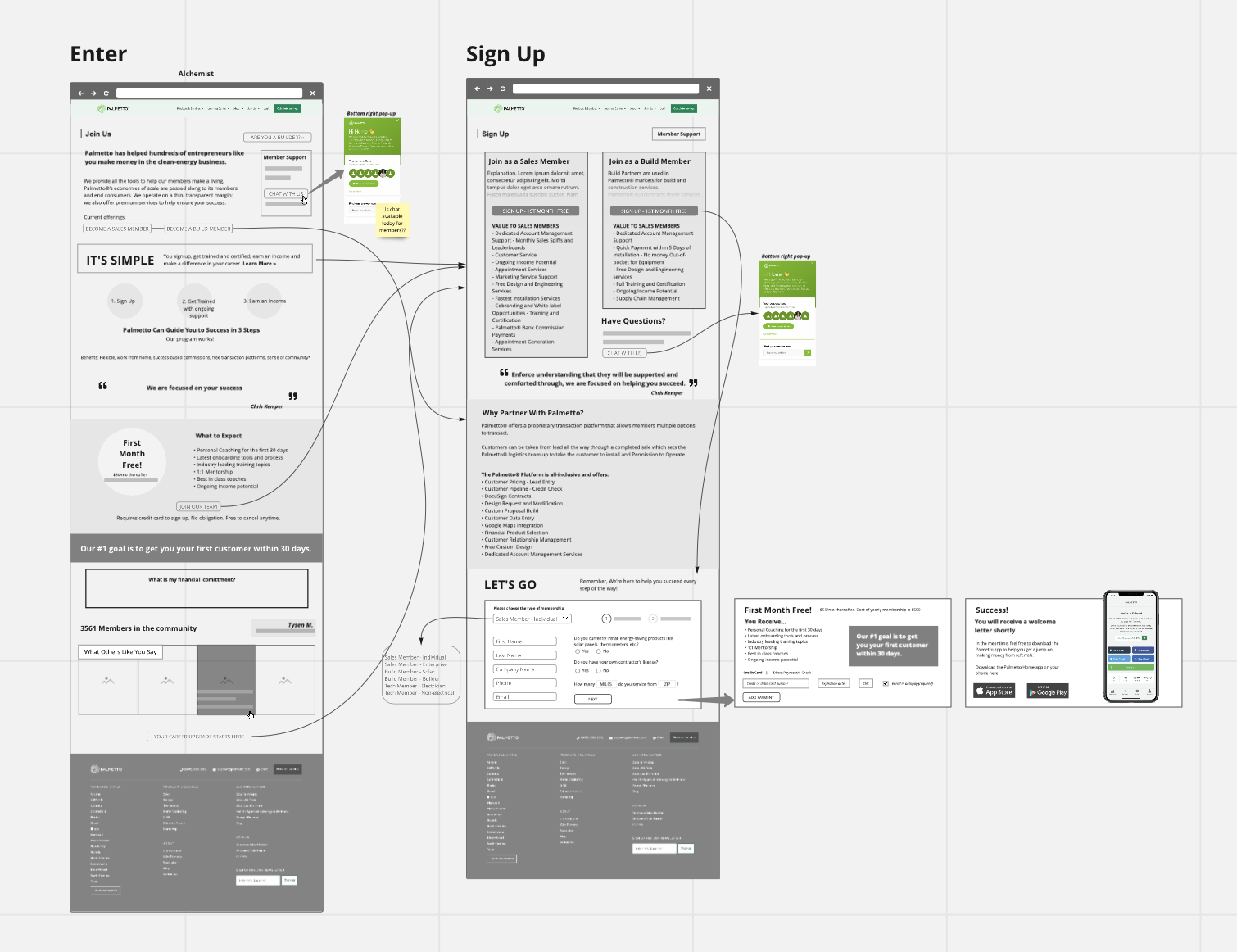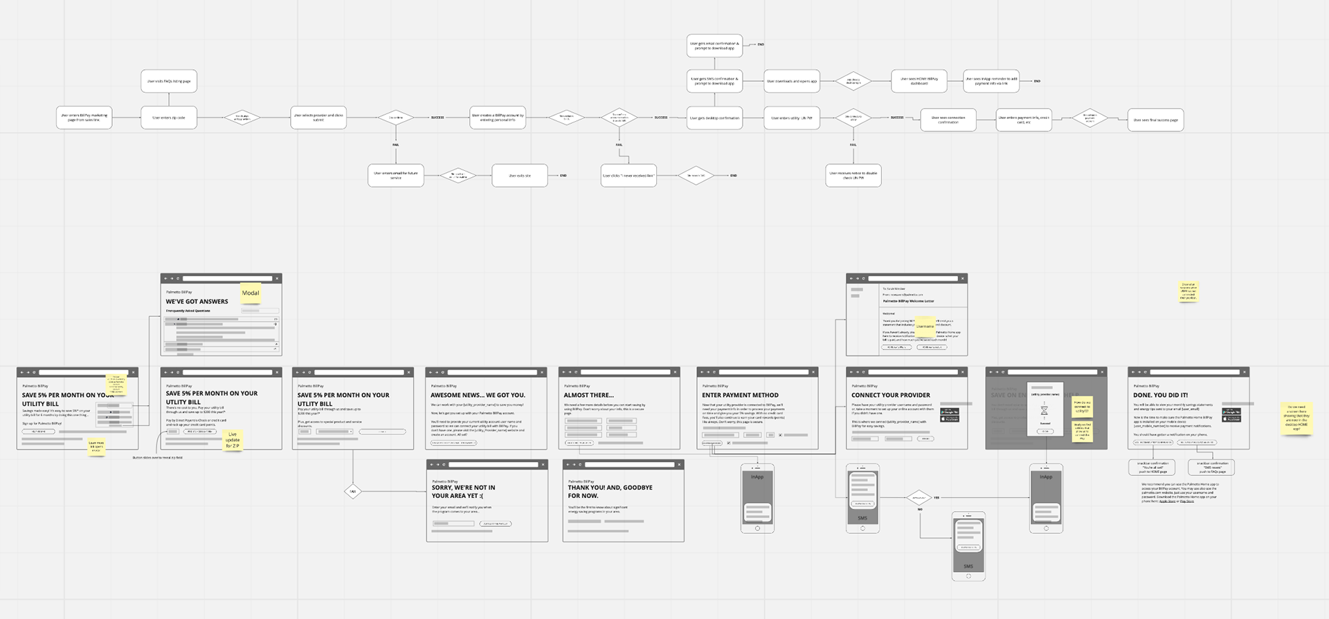 Wireframed additional service design programs to guide the customer to the app.