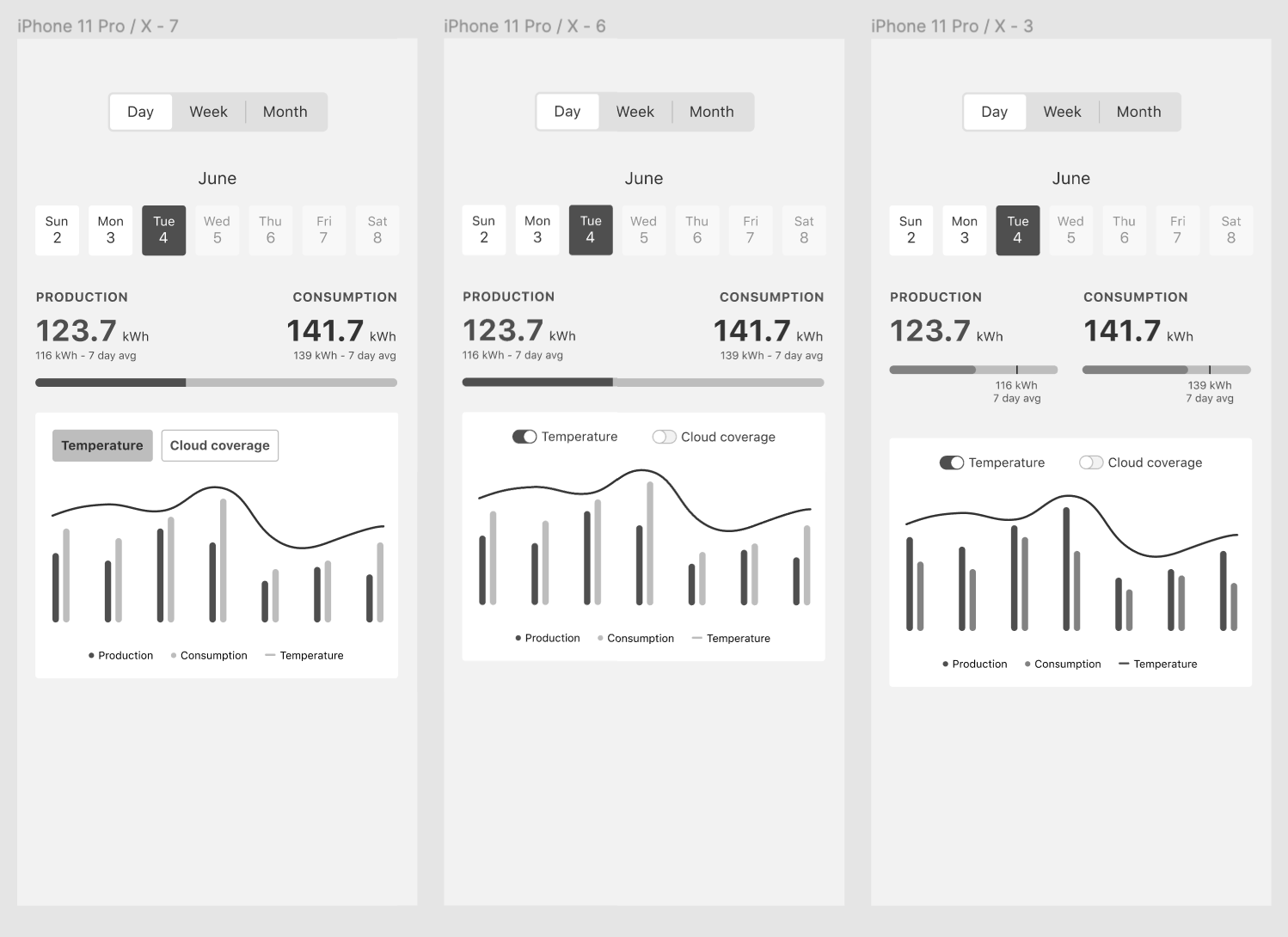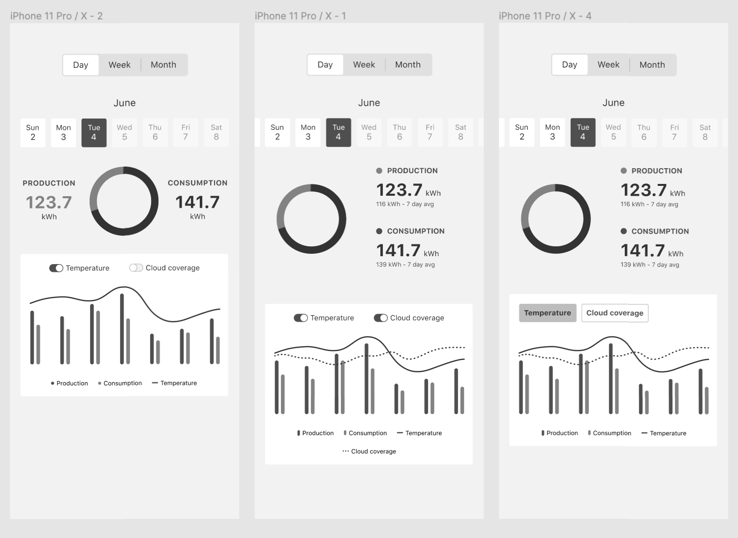Explored data visualization concepts and light and dark modes.