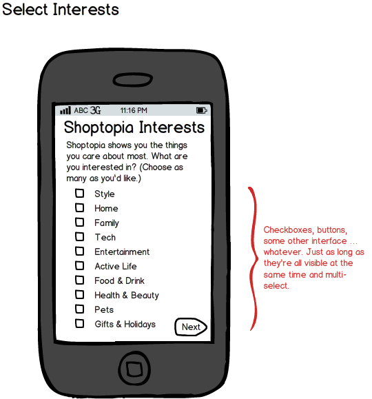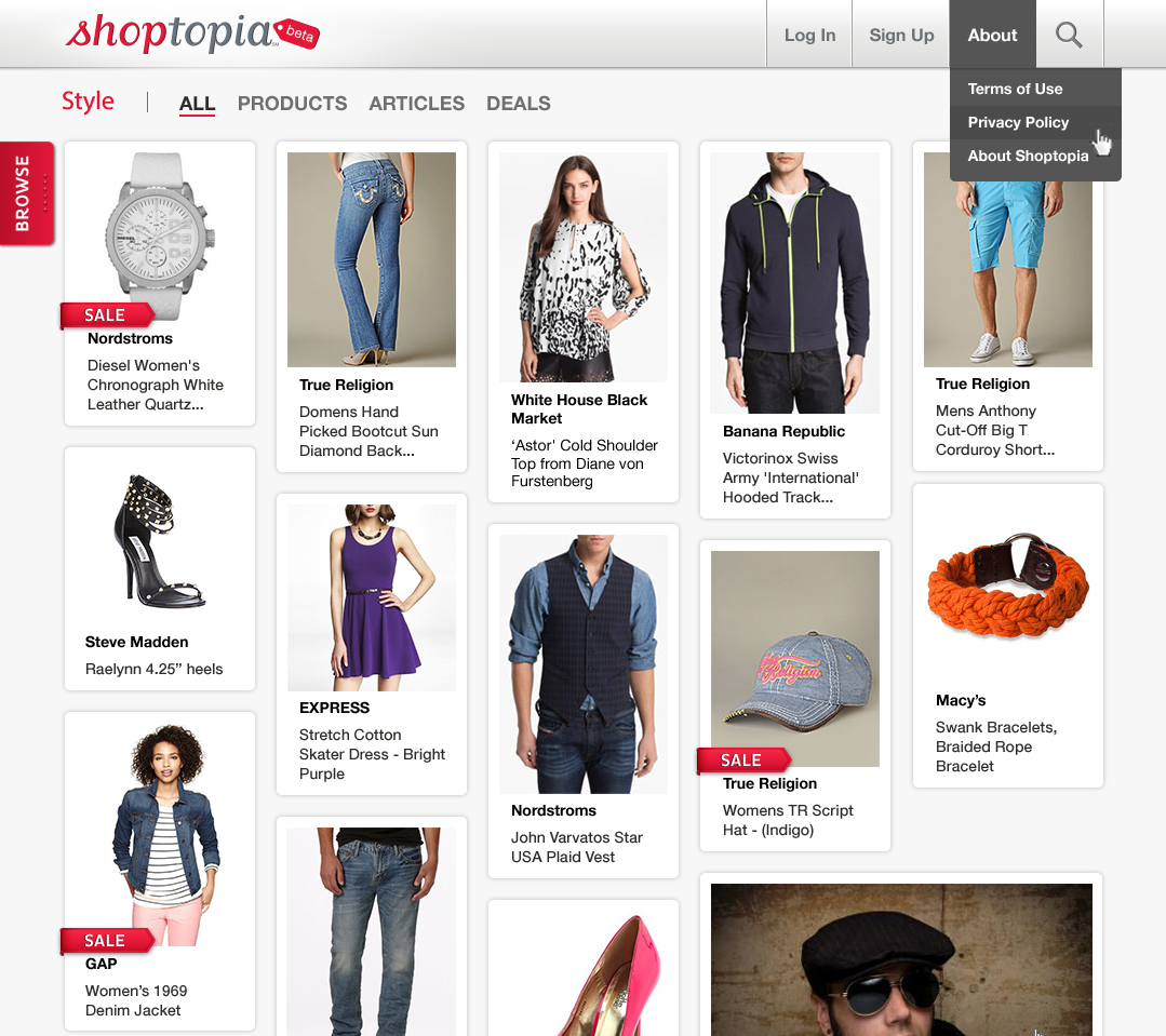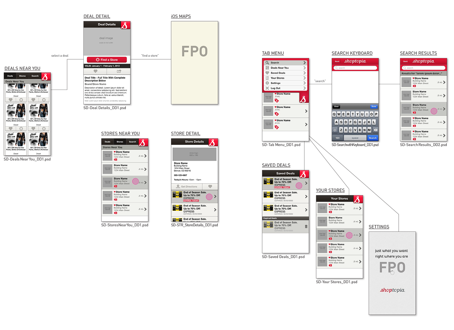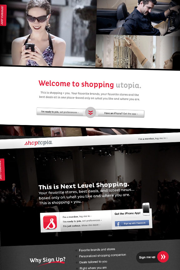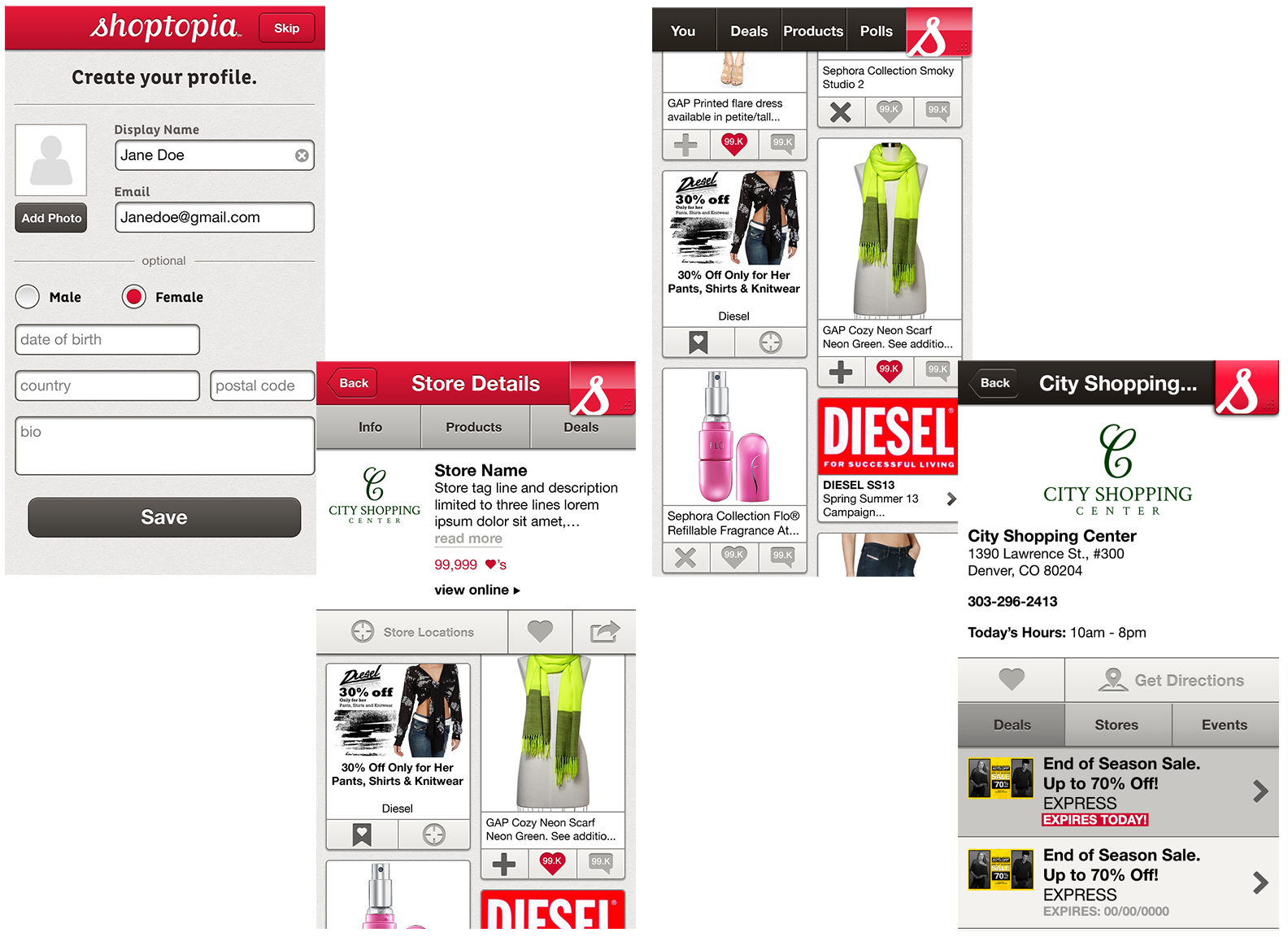 Role: Senior Interactive Designer for Placewise Network's personal shopping assistant app "Shoptopia".